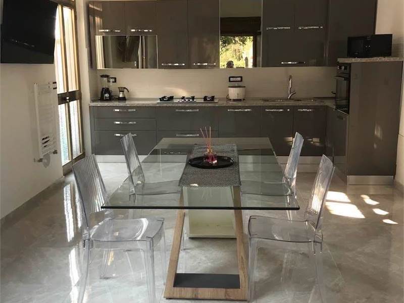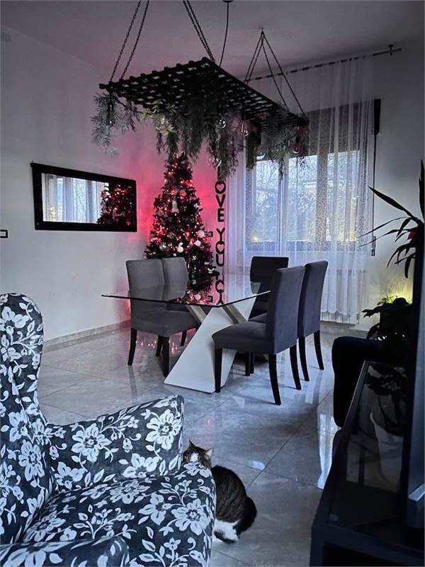 Si compone di un Ampio Ingresso, Salone con Cucina a Vista, 3 Camere da Letto Matrimoniali, 2 Bagni e Ripostiglio, oltre al Piano Seminterrato della stessa metratura nel quale troviamo una bellissima Taverna (completamente finita), locale lavanderia e cantina.